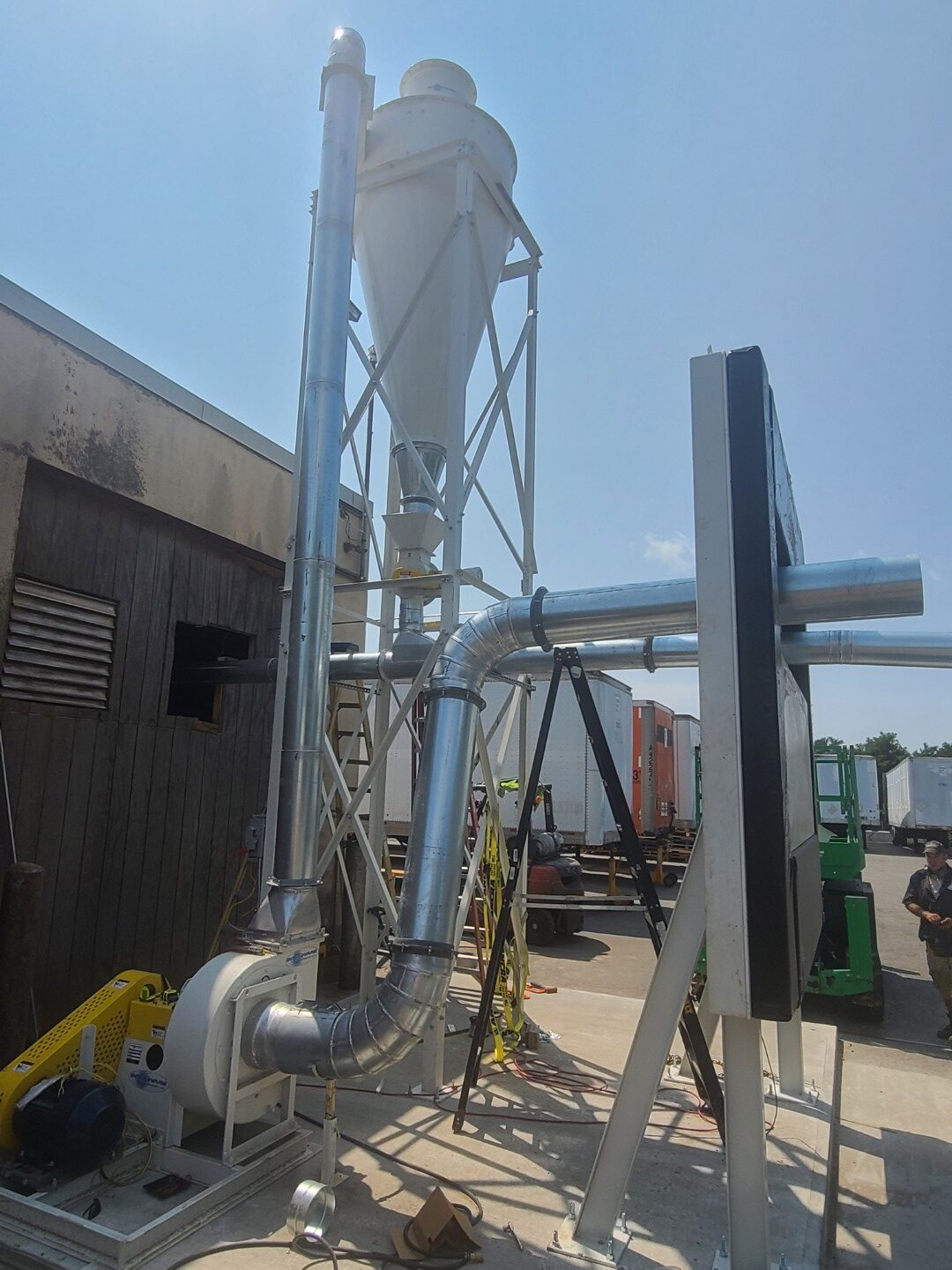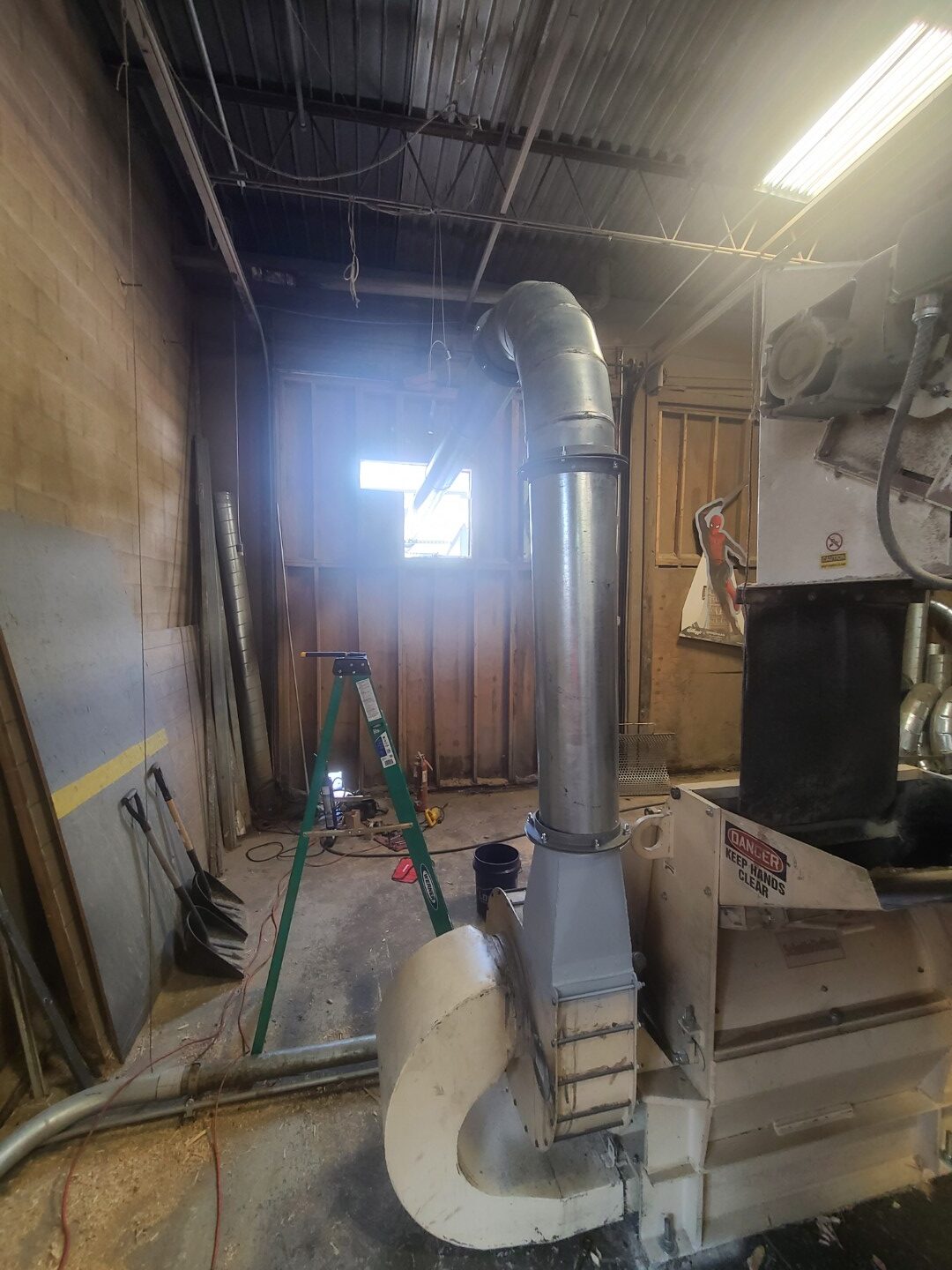 One of our recent projects involved working with Progress Pallet in Middleborough, Maine, where the facility required an effective dust collection system to manage the large amounts of sawdust produced during pallet grinding and wood processing operations.