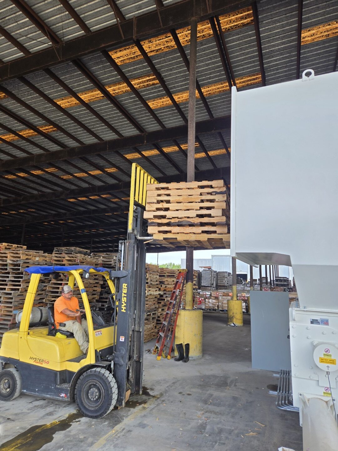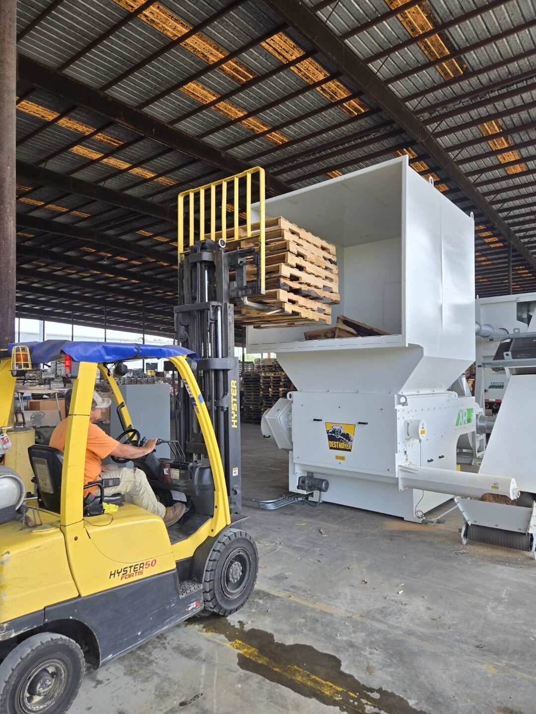 Today, Synergy Solutions in Cordelle, GA operates with a highly efficient system that transforms pallet scrap into a streamlined, automated process. What was once a costly waste stream is now a controlled and productive operation.