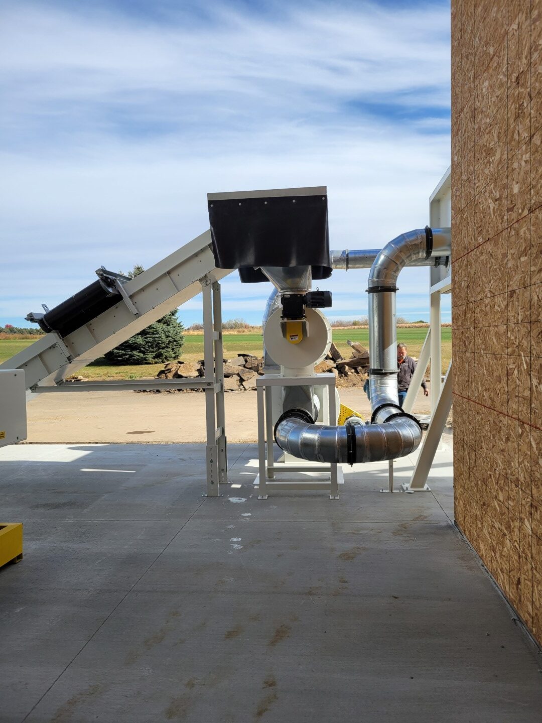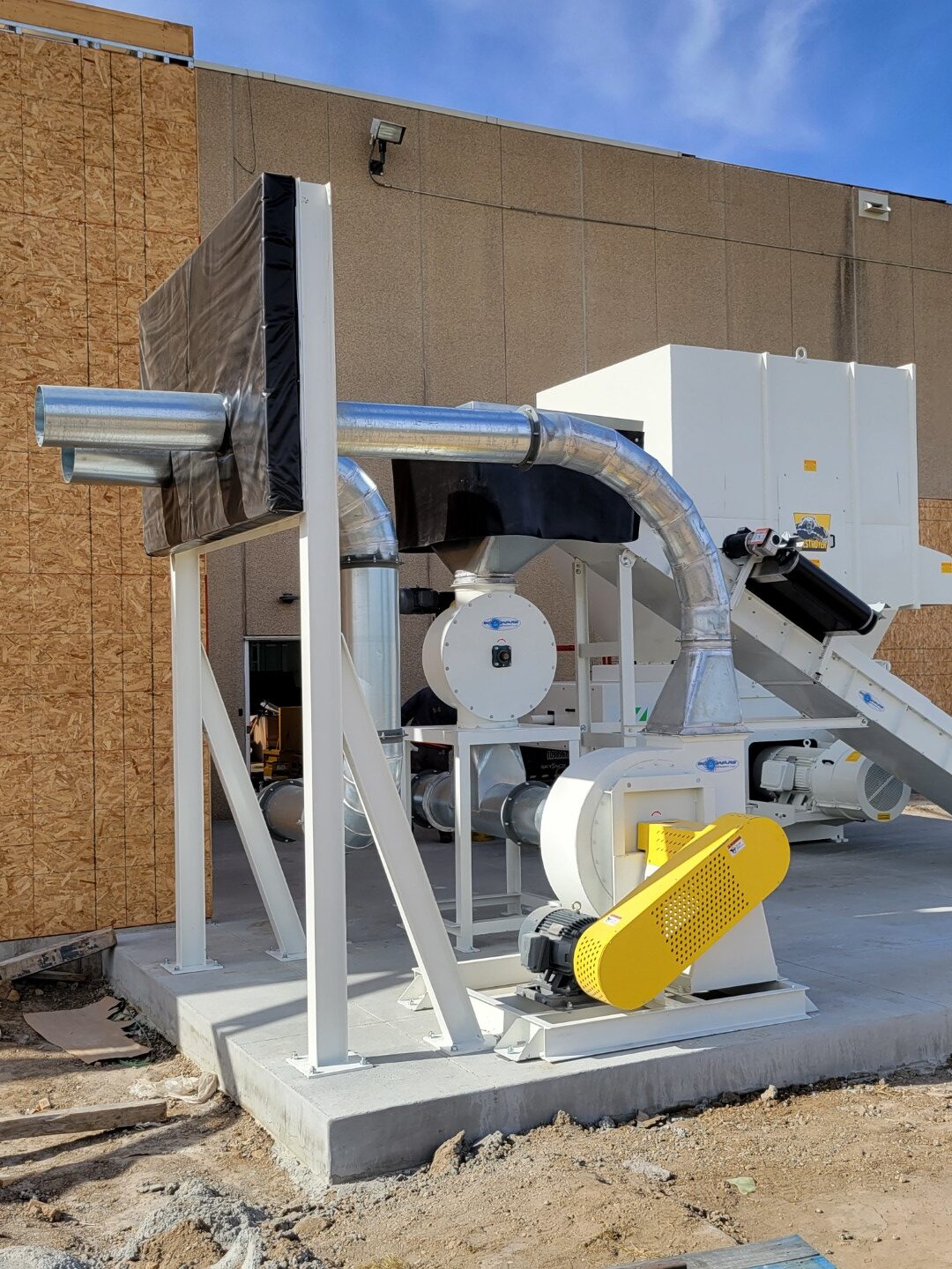 Boulware Equipment delivered a complete system centered around high-performance wood scrap grinding and automated material handling.