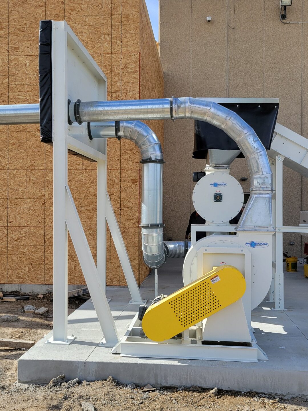 At the core of the installation, a new grinding unit was added to process pallet scrap into consistent, reusable material. Once processed, the proprietary Boulware system automates the movement and handling of the material—ensuring smooth, continuous operation throughout the facility.