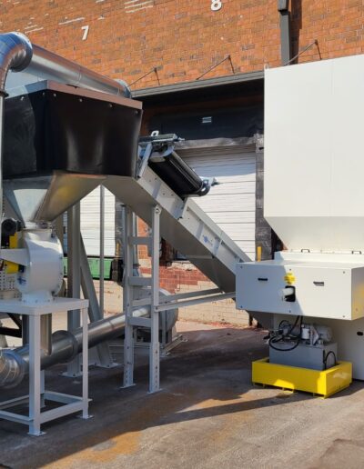 Boulware Equipment installed a Cresswood grinder and automated wood scrap processing system for a pallet recycler in Richmond, VA, enabling efficient wood scrap grinding, metal separation, and profitable wood product recycling. When the company relocated its facility, Boulware successfully moved and reinstalled the entire system, ensuring continued landfill avoidance and uninterrupted recycling operations.